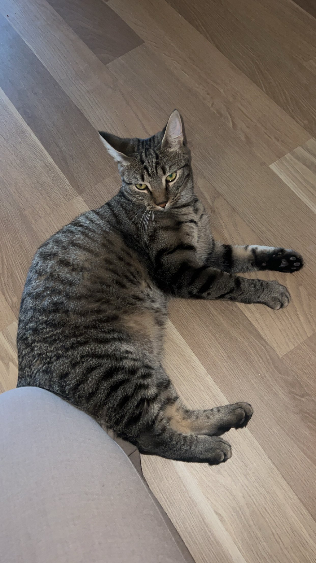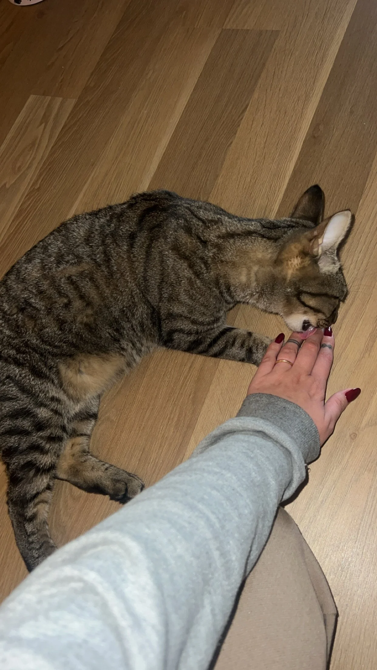 Jeg er vandt med å bo med andre katter, her jeg bor nå er det 2 andre hunnkatter. Jeg er en leken katt, og tar alt jeg får tak i. Så du burde gjemme unna ting du ikke vil jeg skal ta.